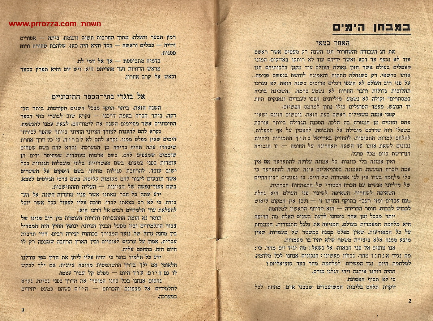 מתוך עלון "תנועת הנוער הלומד – המחנות העולים, אייר 1941: