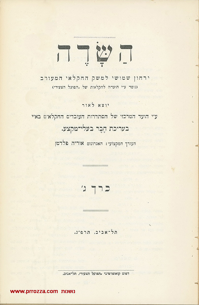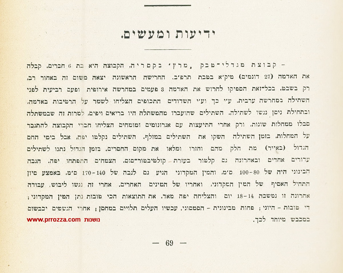 ד. עדות על גידול טבק מתוך: ירחון השדה, 1923 (ראה על ניסיונות נוספים שכשלו בהערות העורך). בירחון השדה פורסמו מידי חודש הנחיות לגידול טבק. (שימו לב לשימוש בקולטיבטור-סוס).