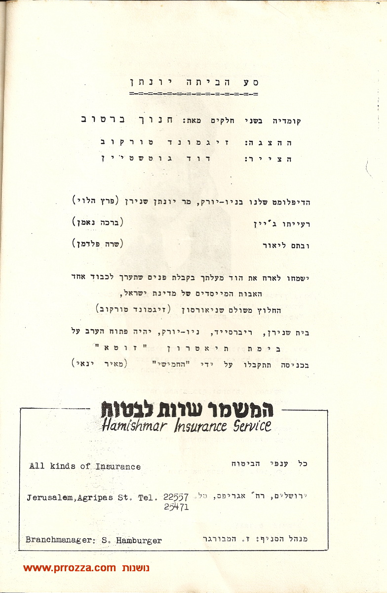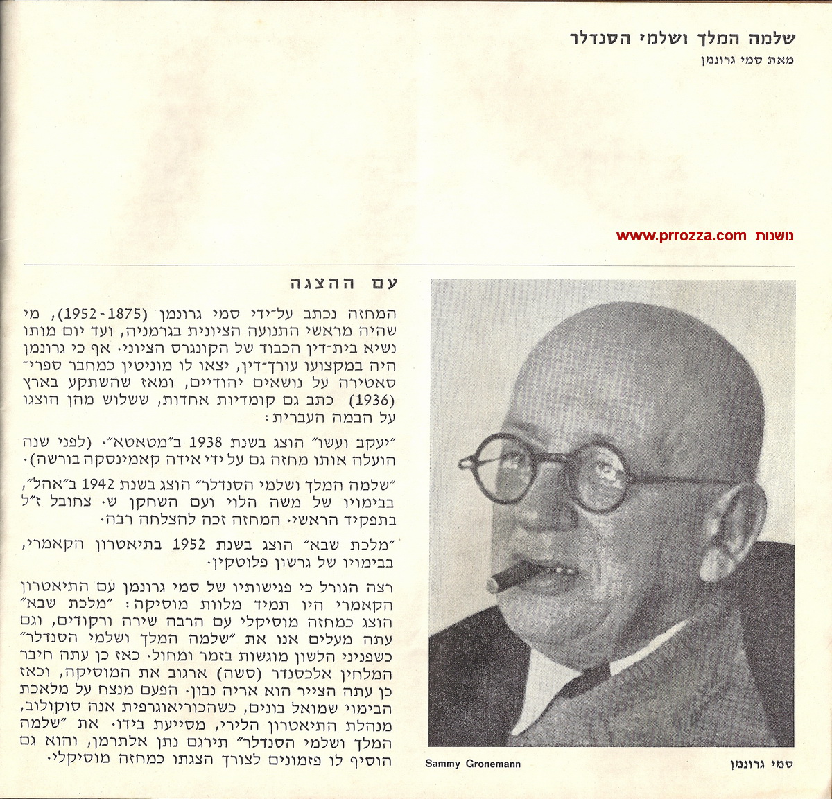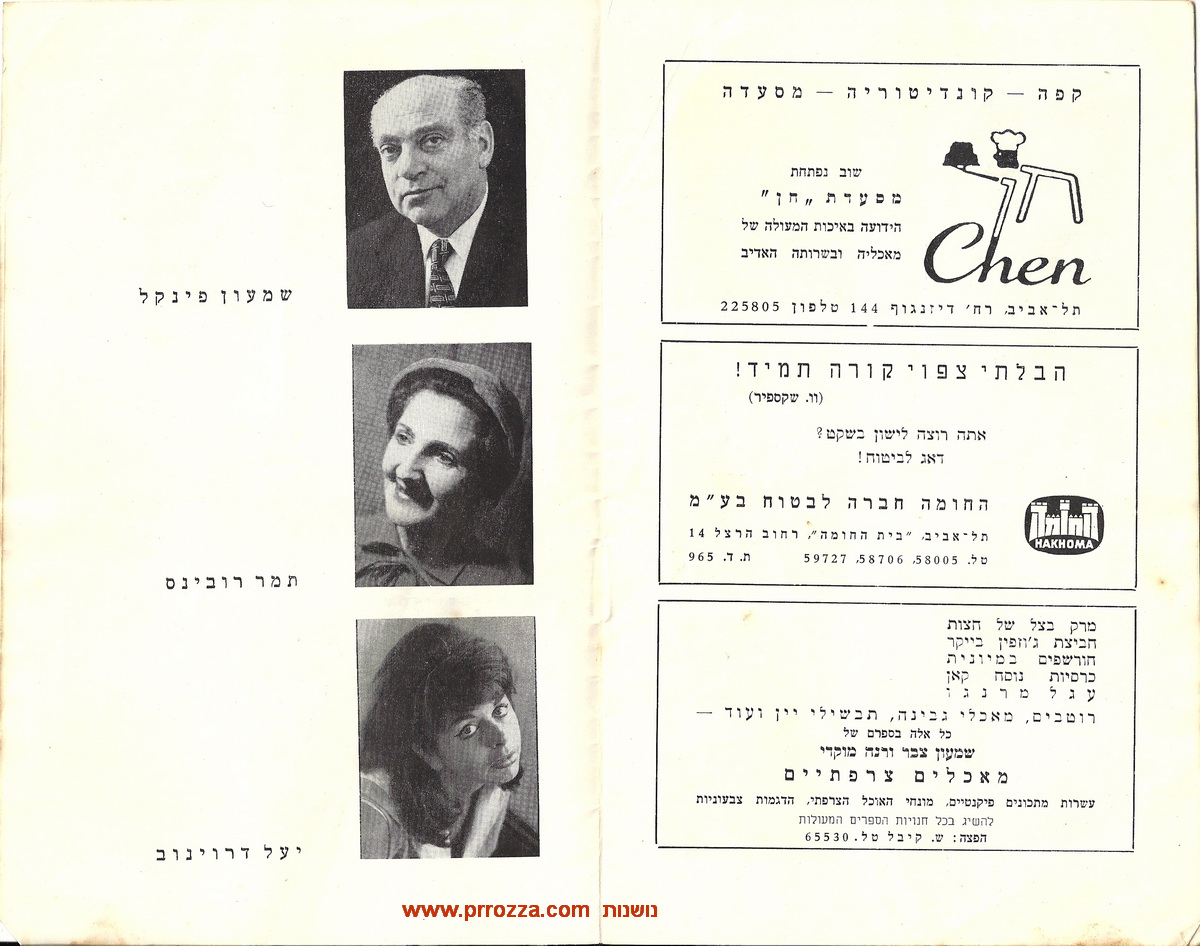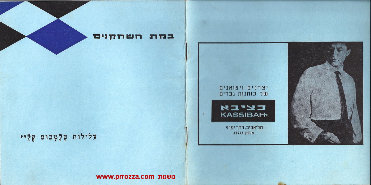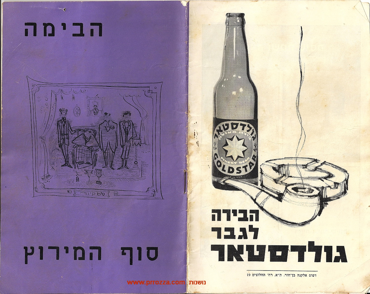 ז. ולסיום פרק זה המוקדש לתיאטרון הישראלי, נחזור אל התיאטרון הקאמרי ולמחזמר "שלמה המלך ושלמי הסנדלר" במהדורת מחזמר, משנת 1964 (כפי שמעידים הכרטיסים המצורפים להלן). זהו אחד ממופעי הבמה המצליחים של כל הזמנים בישראל והתכנייה בהתאם. כריכה צבעונית, ארבעה-עשר עמודים מוקדשים לפרסומות! בצבע ספיה חגיגי (ראו דוגמה להלן). ראו מידע מעניין על כותב המחזה, דמות ססגונית כשלעצמה.