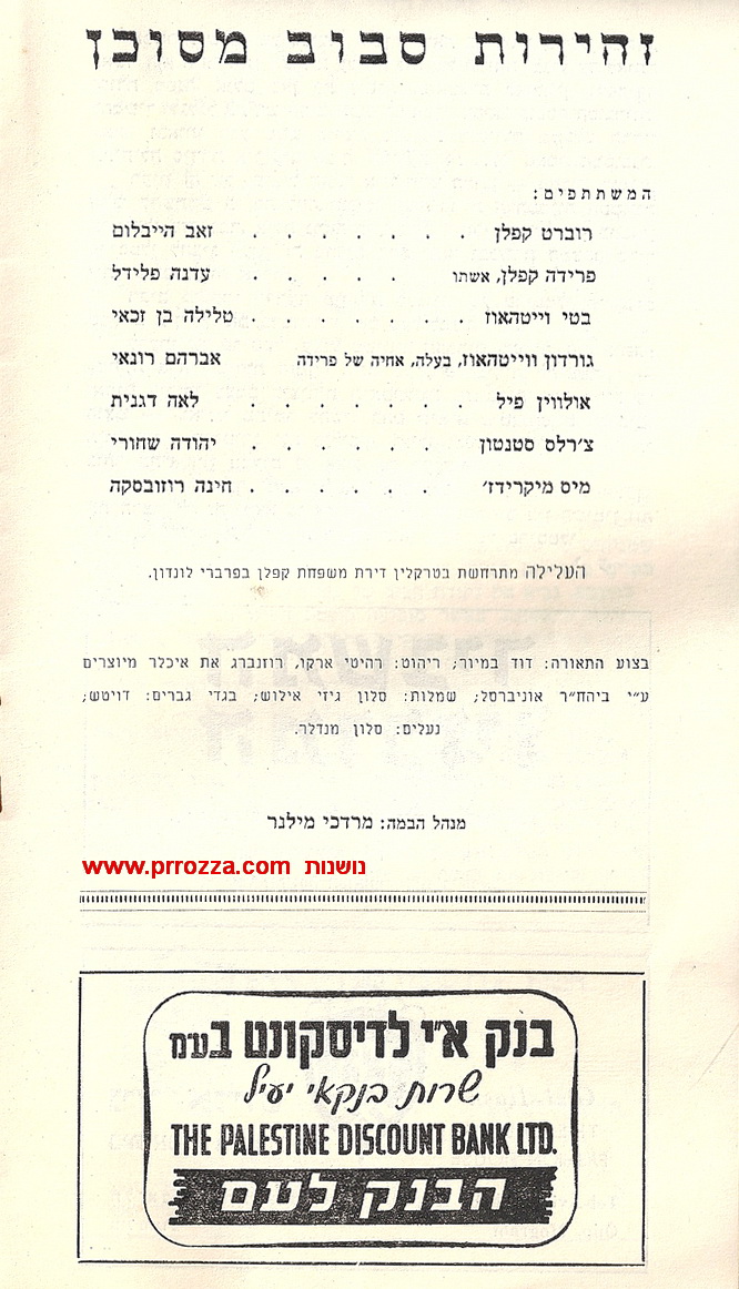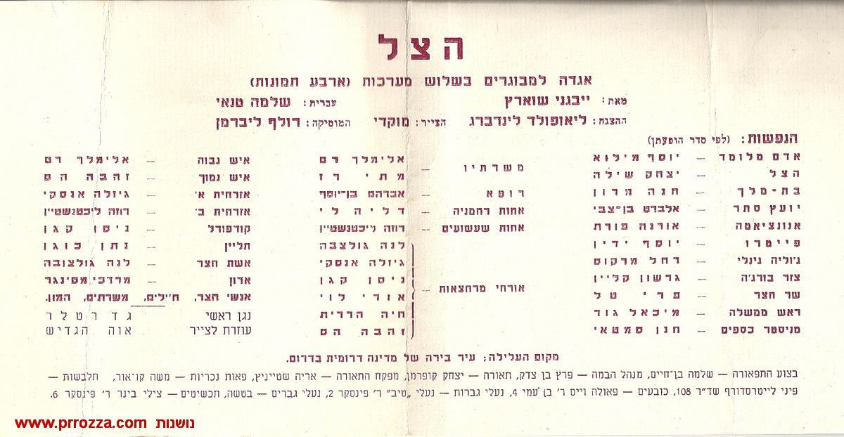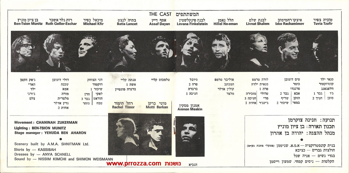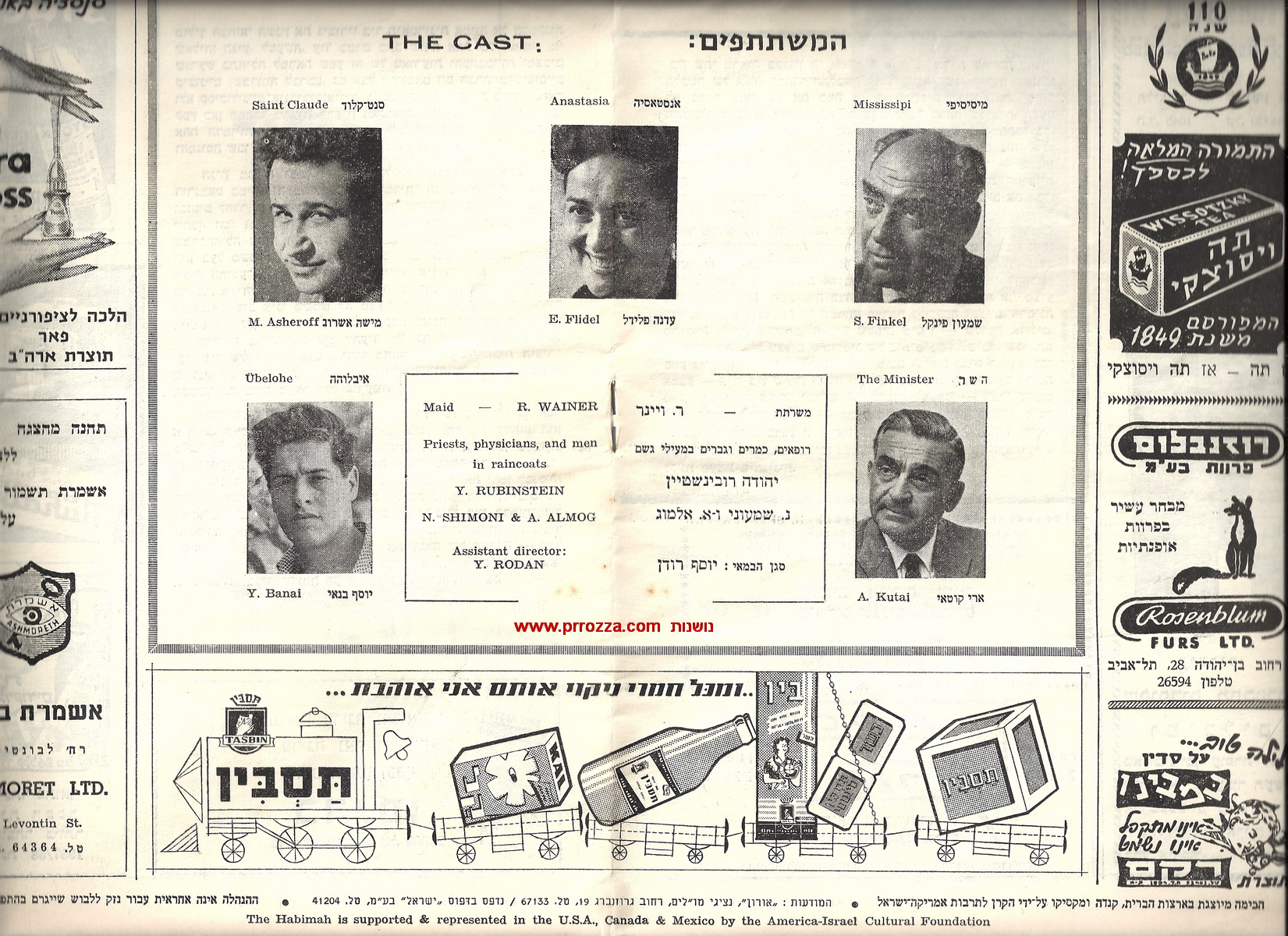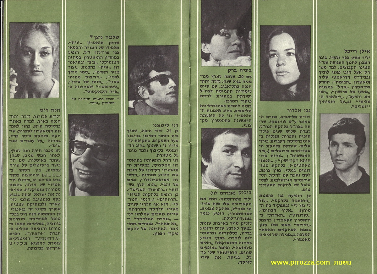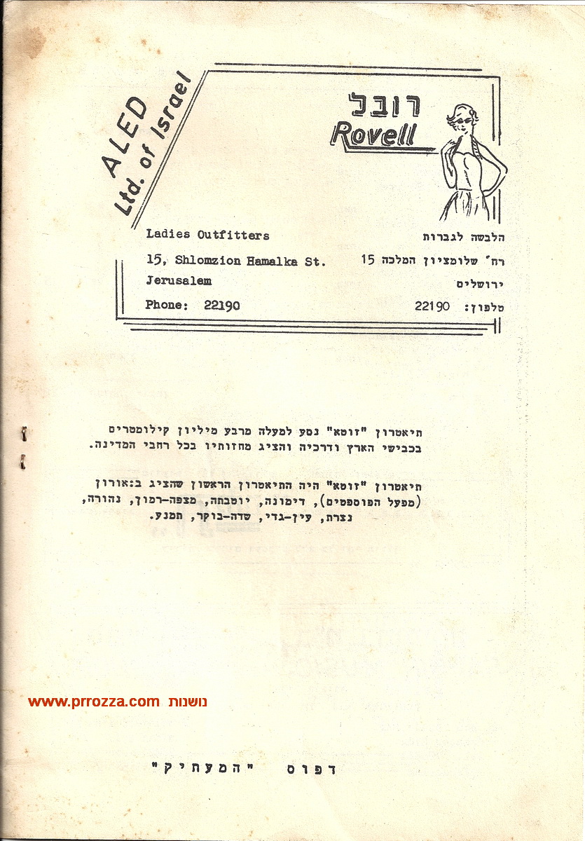 ז. ולסיום פרק זה המוקדש לתיאטרון הישראלי, נחזור אל התיאטרון הקאמרי ולמחזמר "שלמה המלך ושלמי הסנדלר" במהדורת מחזמר, משנת 1964 (כפי שמעידים הכרטיסים המצורפים להלן). זהו אחד ממופעי הבמה המצליחים של כל הזמנים בישראל והתכנייה בהתאם. כריכה צבעונית, ארבעה-עשר עמודים מוקדשים לפרסומות! בצבע ספיה חגיגי (ראו דוגמה להלן). ראו מידע מעניין על כותב המחזה, דמות ססגונית כשלעצמה.