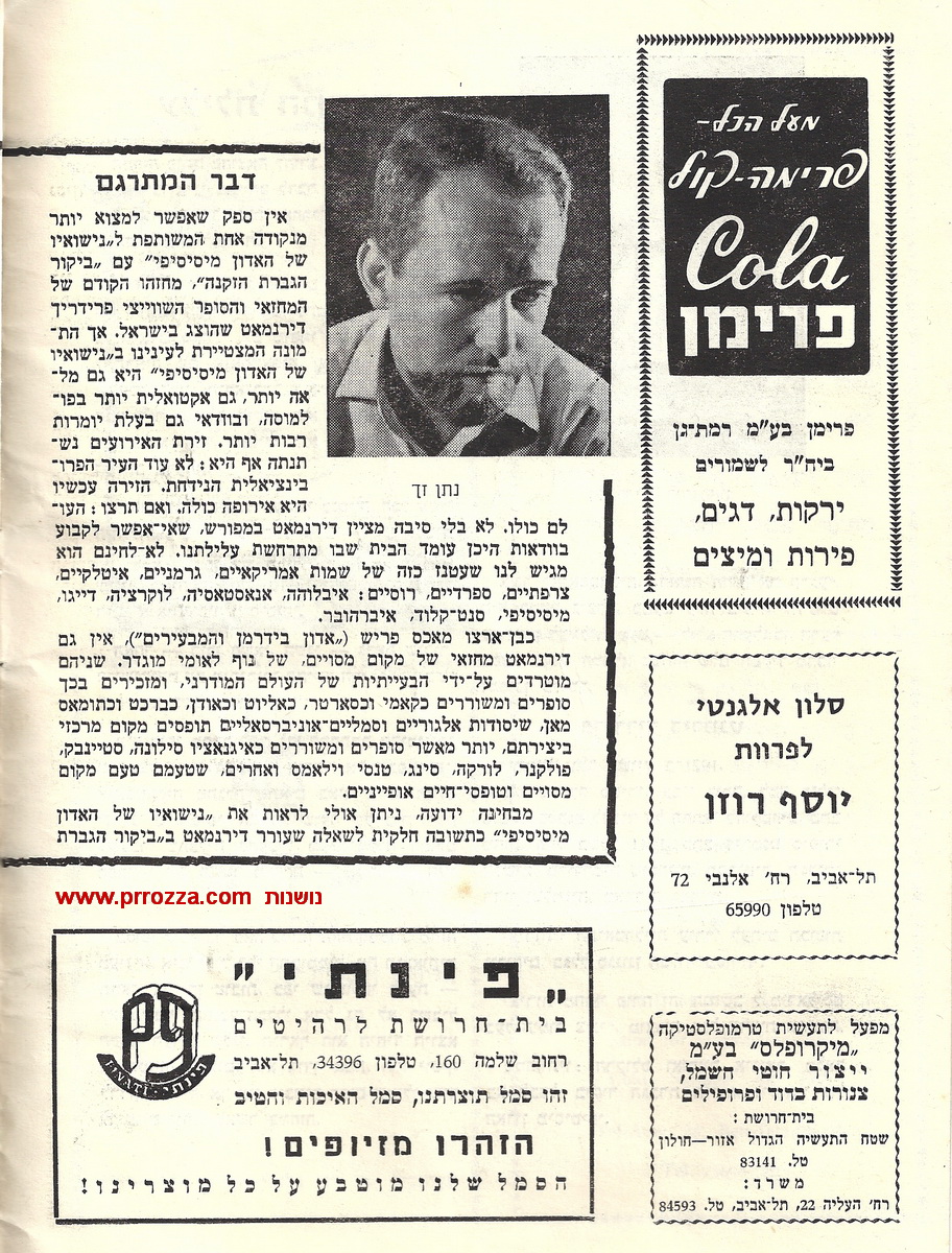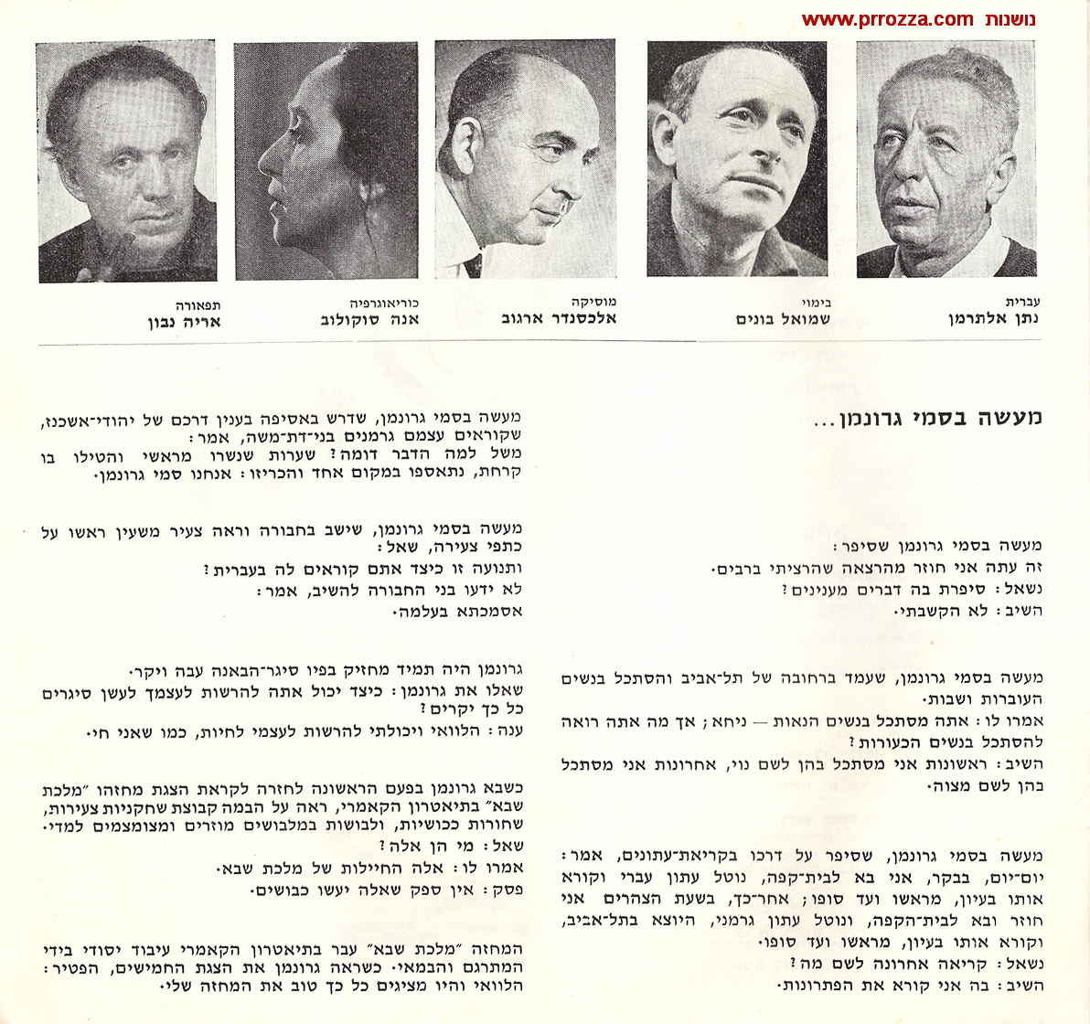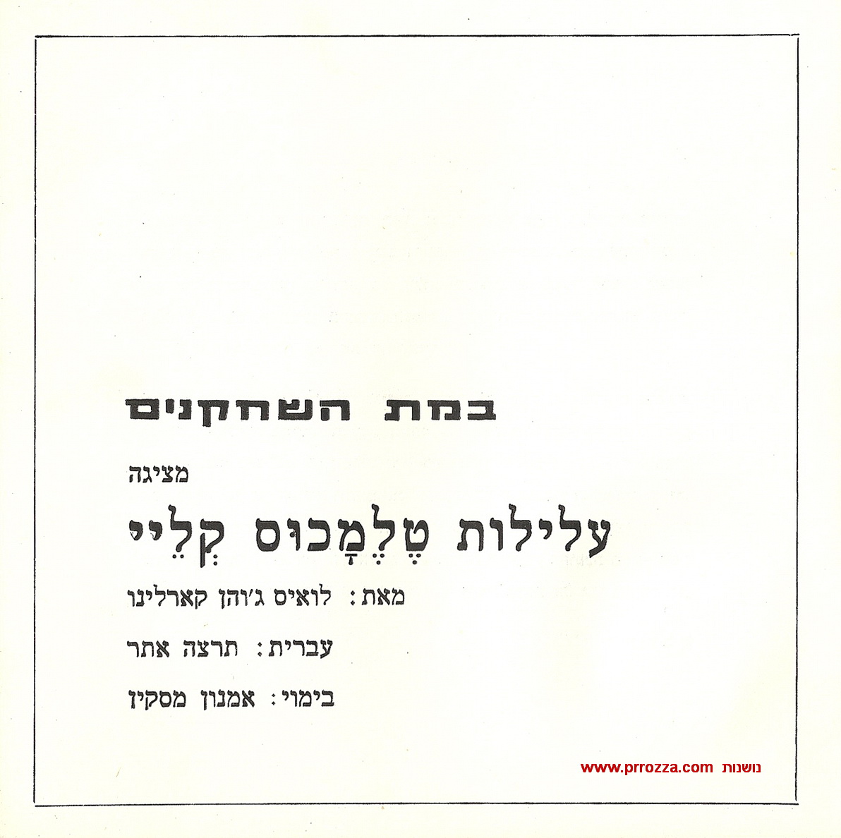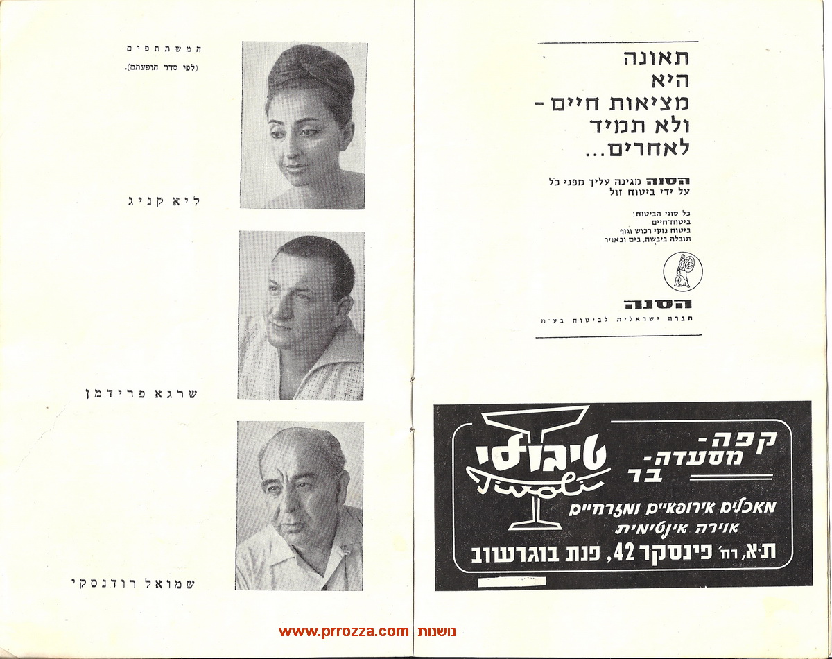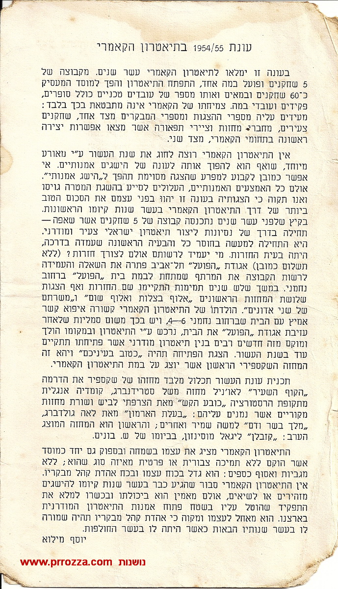 ז. ולסיום פרק זה המוקדש לתיאטרון הישראלי, נחזור אל התיאטרון הקאמרי ולמחזמר "שלמה המלך ושלמי הסנדלר" במהדורת מחזמר, משנת 1964 (כפי שמעידים הכרטיסים המצורפים להלן). זהו אחד ממופעי הבמה המצליחים של כל הזמנים בישראל והתכנייה בהתאם. כריכה צבעונית, ארבעה-עשר עמודים מוקדשים לפרסומות! בצבע ספיה חגיגי (ראו דוגמה להלן). ראו מידע מעניין על כותב המחזה, דמות ססגונית כשלעצמה.