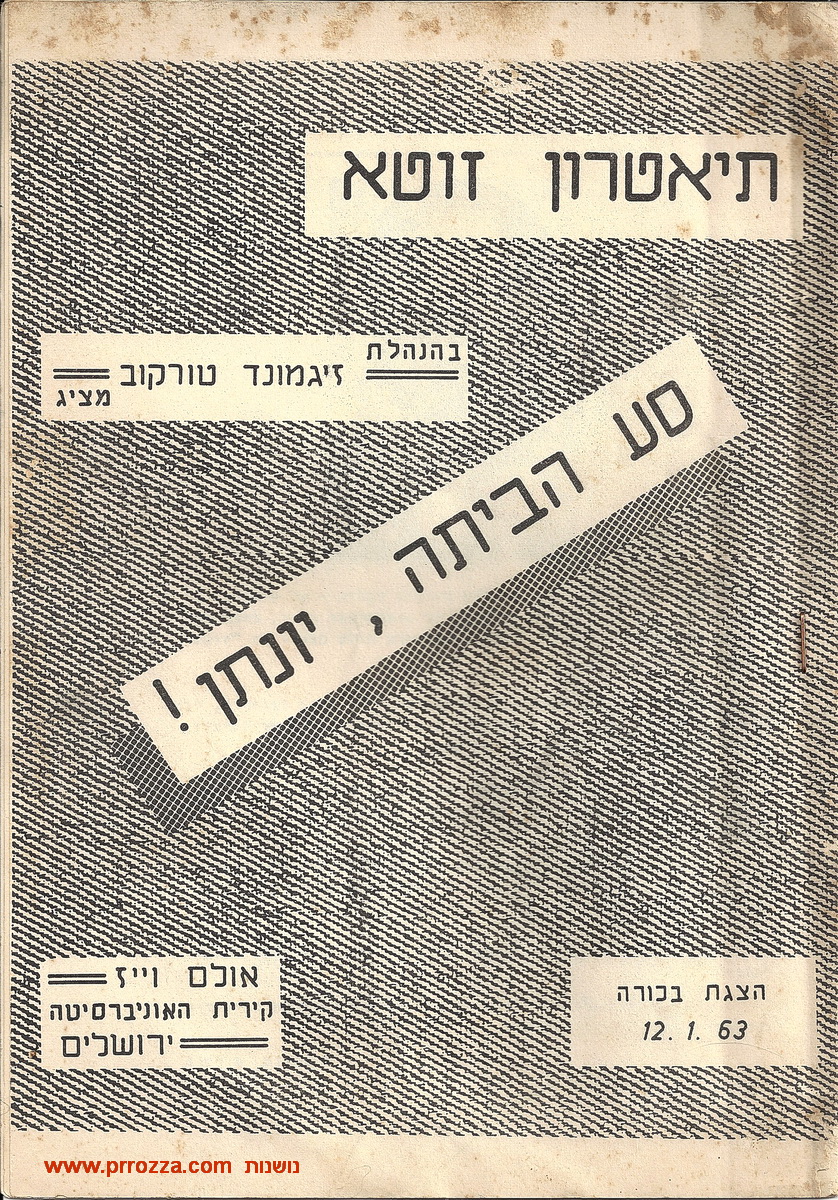א. תיאטרון זוטא. תיאטרון זה פעל בשנים 1956 – 1967. מייסדיו היו זיגמונט טורקוב ומאיר ינאי, שניהם דמויות מעניינות מאוד. קיראו בכתבה מעיתון דבר על תיאטרון זוטא ומייסדיו. על מאיר ינאי, מן הדמויות הבולטות בחיי התיאטרון בארץ בשנות החמישים והשישים, שהפך לרב מומחה לקבלה, קראו באתר זה. תיאטרון זוטא היה תיאטרון נודד, שהופיע בעיקר ביישובי הפריפריה וההתיישבות העובדת בהרכב מצומצם של 3 – 5 שחקנים. בתכנייה משנת 1963 של ההצגה "סע הביתה יונתן" מאת הסופר חנוך ברטוב, מסביר זיגמונט טורקוב את דרכו של התיאטרון.